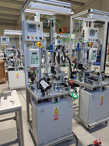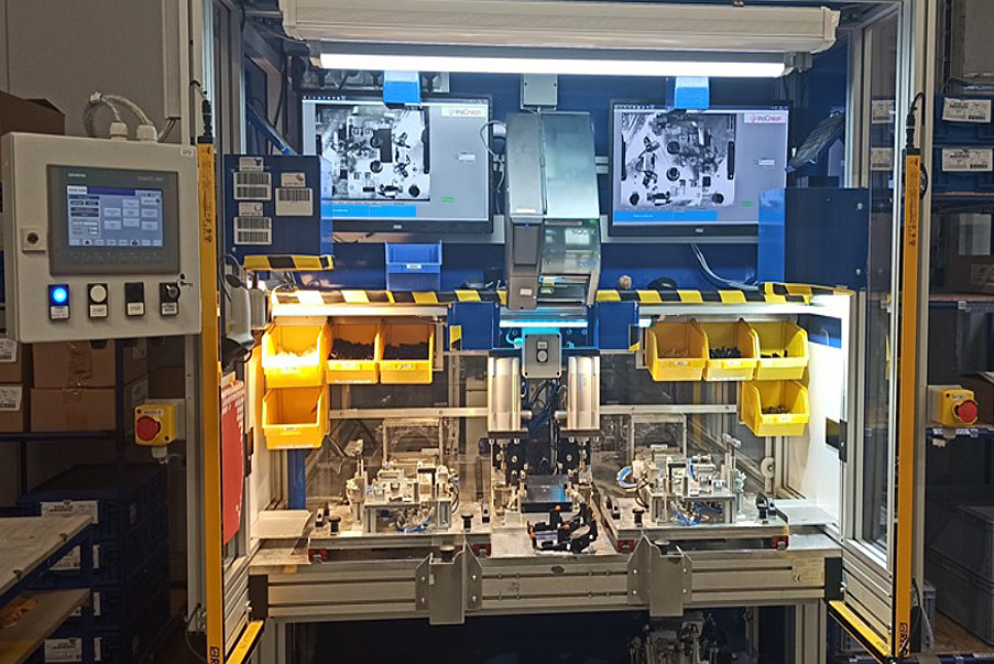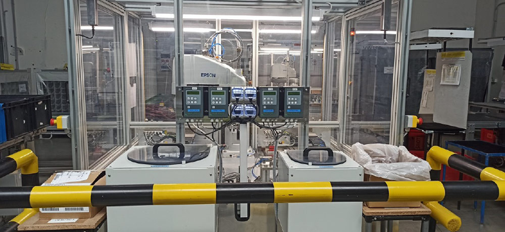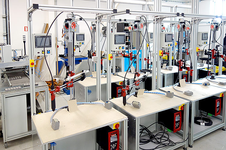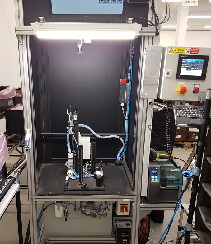 Montážní zařízení se šroubováky DEPRAG a DESOUTTER, doplněné o dispenzory, čtečky čárových kódů, kamery, atd.