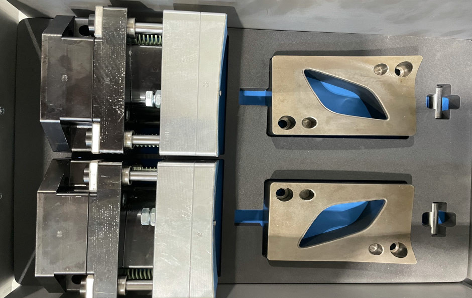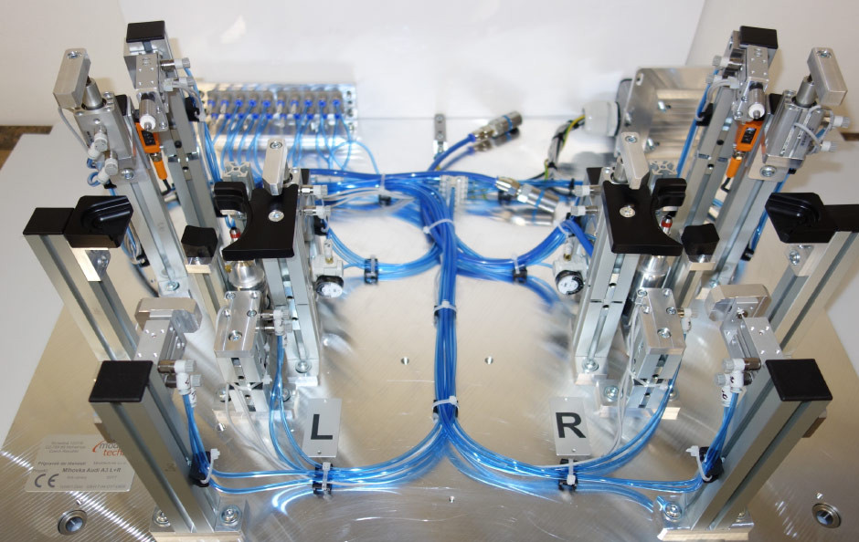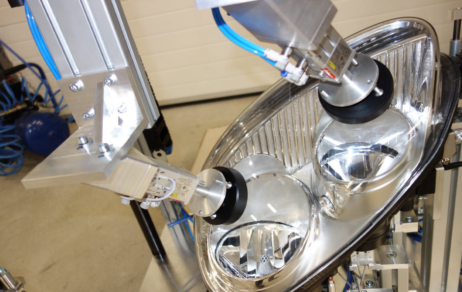 Zařízení pro vystřihování děr pro ostřikovače světlometů.